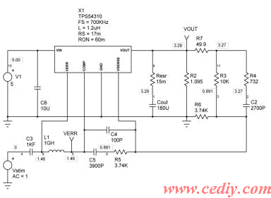 (图12)TPS54310演示板直流和交流小信号仿真电路